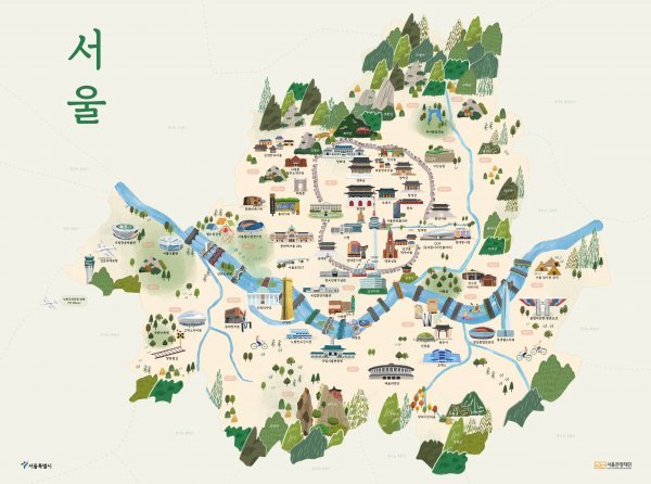 서울 지형 특성과 관광자원 매력 일러스트 구현