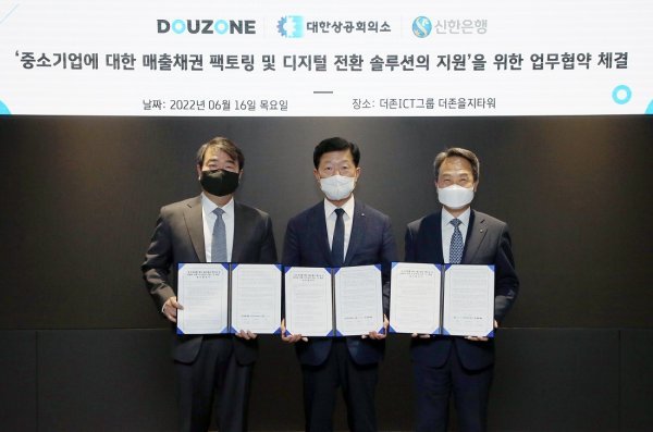 신한은행이 대한상공회의소·더존비즈온과 전략적 업무협약을 체결했다.