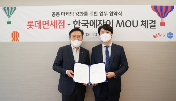 박창영 롯데면세점 글로벌본부장(왼쪽)과 이대로 한국에자이 전무이사