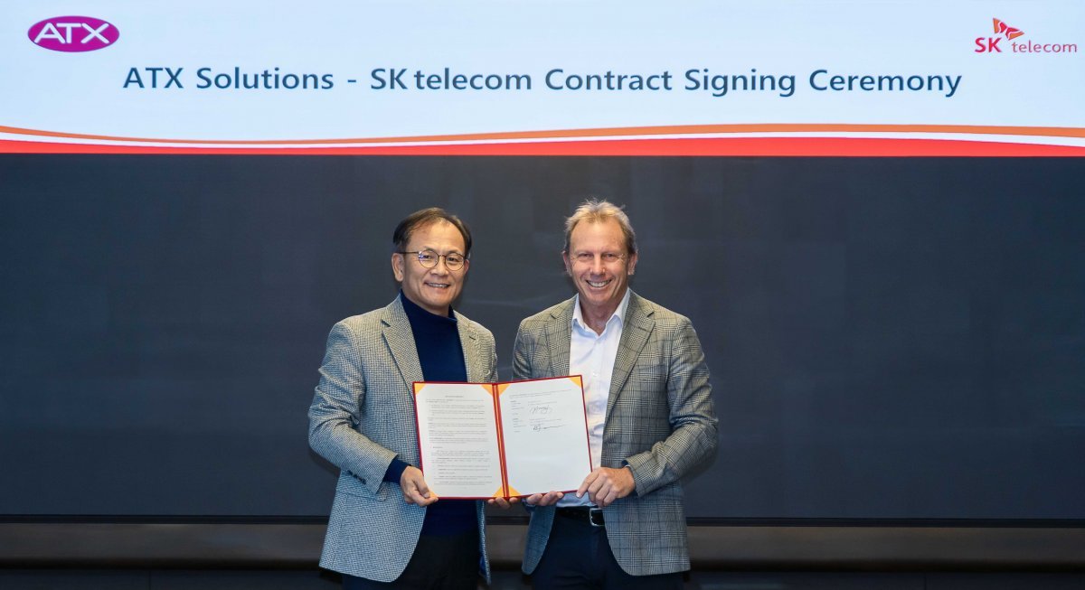 하민용 SK텔레콤 CDO(왼쪽)와 로저 데이비스 에이티엑스 창업자 겸 디렉터. 사진제공 | SK텔레콤