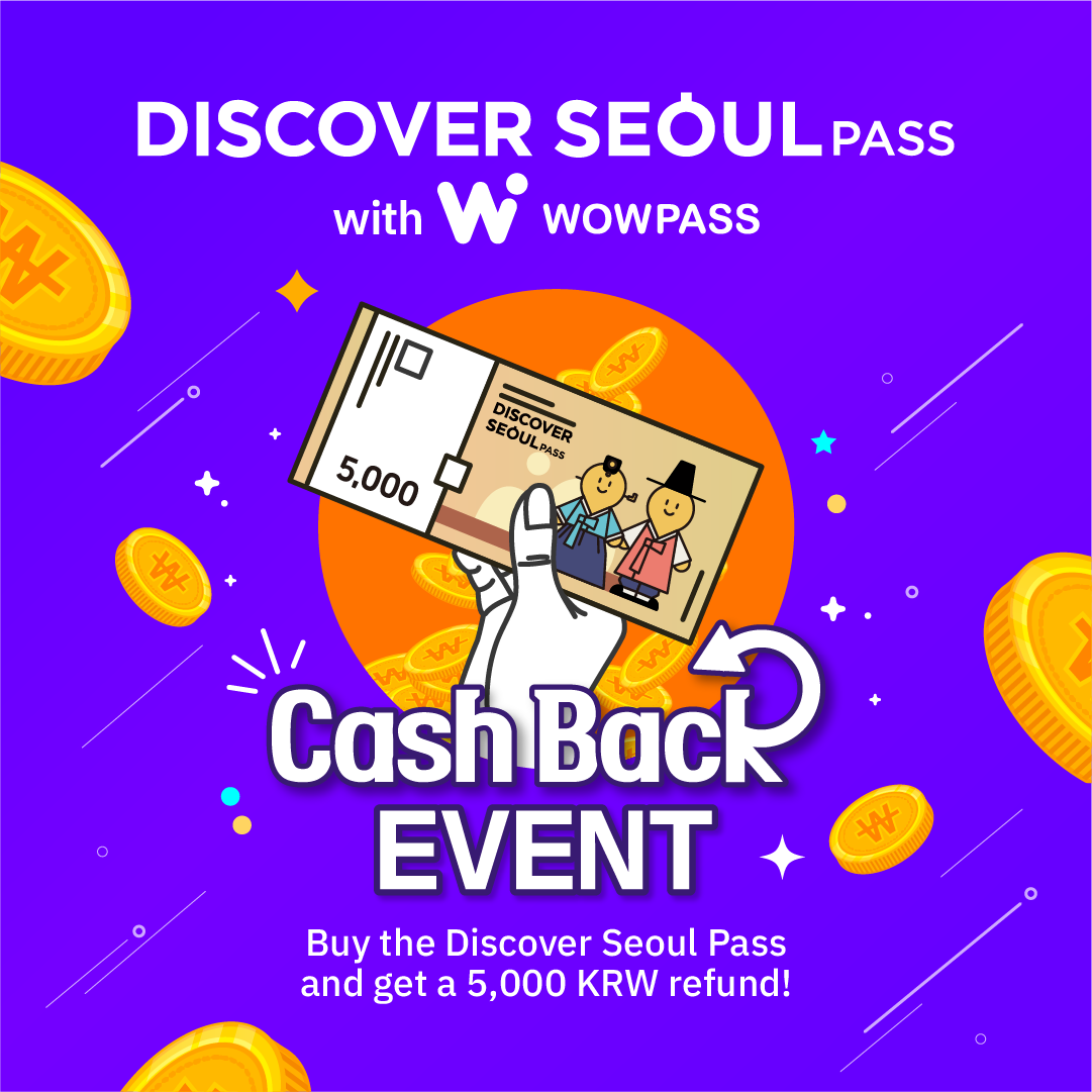 협업을 기념해 와우패스 앱에서 디스커버서울패스를 구매하는 외국인 관광객 대상으로 선착순 1만 명에게 5000원 캐시백 이벤트를 실시한다.