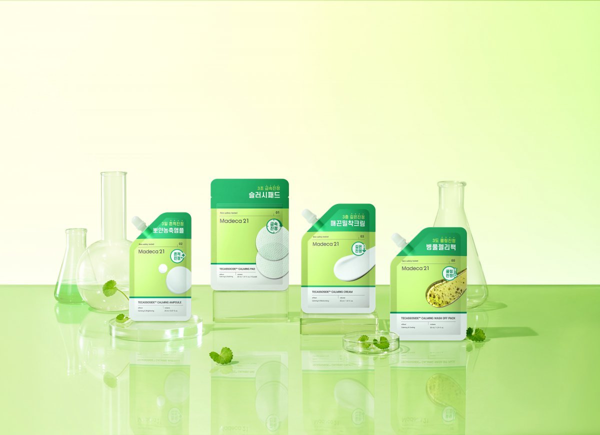 마데카21 테카소사이드 카밍 라인은 동국제약의 독자성분 테카소사이드를 함유해 피부 진정과 흔적 을 한 번에 케어해 주는 ‘원큐’ 진정 마스터 라인이다. 워시 오프 팩, 패드, 앰플, 크림 등 4종이다. 저자극 포뮬러로 설계하고 전 제품 피부자극테스트를 완료해 예민한 피부도 부담 없이 매일 사용할 수 있다.