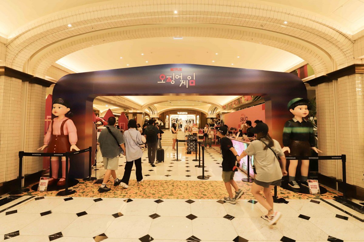 선두주자는 신세계백화점으로 10일까지 강남점 지하 1층 스위트파크와 센텀시티 지하 2층 하이퍼스테이지에서 ‘오징어 게임 팝업스토어’를 운영한다. 18~31일에는 서울 영등포 소재 타임스퀘어점과 대구신세계에서 열린다.
