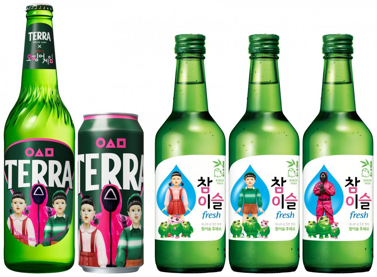 주류업계에서는 하이트진로가 나서, ‘테라·참이슬 오징어 게임 에디션’을 내놓았다. 라벨 디자인에 영희, 철수, 핑크가드 등을 담았다. 또 영희 게임기, 테라 컬러잔, 참이슬 컬러잔, 머리끈 등 극중 캐릭터를 활용한 굿즈도 선보였다. ‘테슬라(테라+참이슬)’ 브랜드의 감각적이고 젊은 이미지 강화 전략이라는 게 회사 측 설명이다.