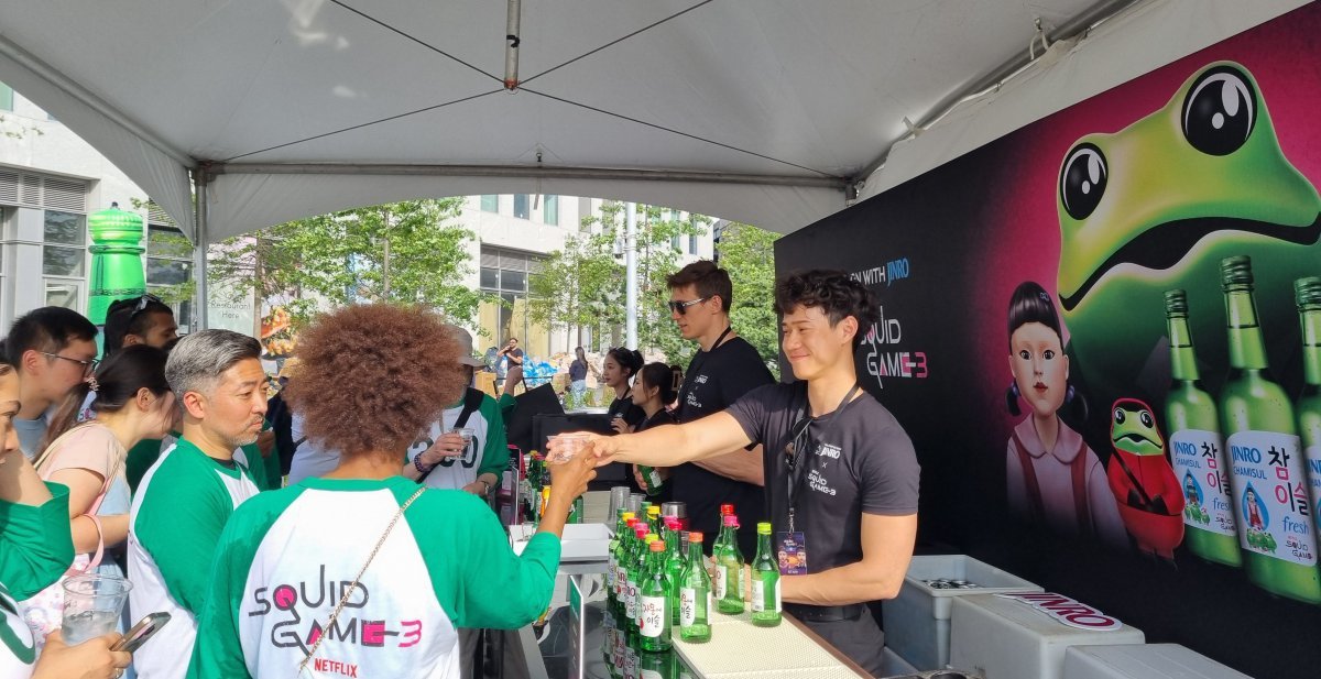 또 최근 미국 뉴욕 도미노파크에서 열린 ‘오징어 게임 시즌3 뉴욕팬 이벤트’에 브랜드 파트너로 참여해 진로 부스를 운영했다. ‘참이슬 오징어 게임 에디션’을 비롯해 신제품 ‘레몬에이슬’을 포함한 과일리큐르 6종 등을 소개했다. 또 소맥 음용법 및 소맥타워 시연 등을 통해 한국 주류 문화를 즐겁게 체험하도록 했다.