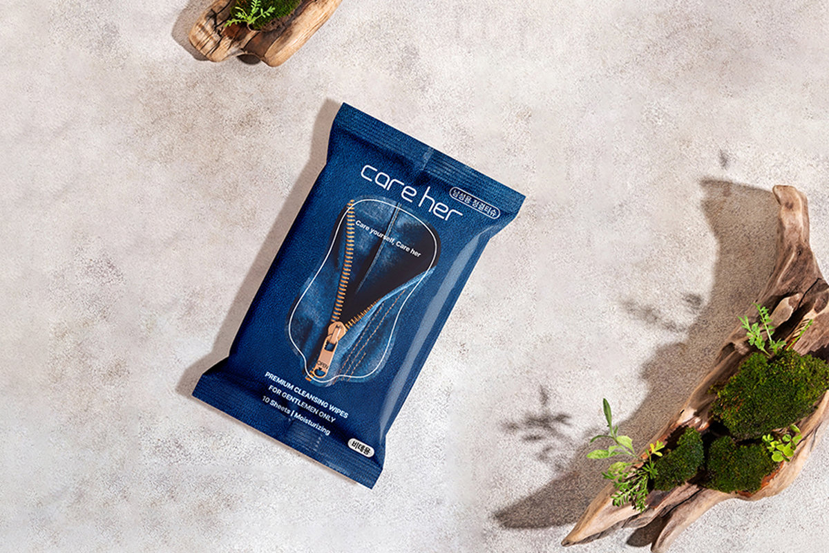 ‘케어허’는 여성 중심의 기존 청결티슈 시장에 ‘남성 전용’이라는 새로운 화두를 던진 혁신적 제품이다. 위생과 건강을 신경 쓴 성분과 환경을 생각한 기술력이 돋보인다. 알로에베라잎추출물, 연꽃잎수, 프로폴리스 등 천연 유래 성분 함유는 물론, 초순수 정제수를 사용해 민감한 부위에도 안심하고 사용할 수 있다. 물에 잘 풀리는 천연 펄프 원단은 사용 후 변기에 바로 버릴 수 있어서 뒤처리의 편의성과 환경 보호까지 동시에 잡았다.
