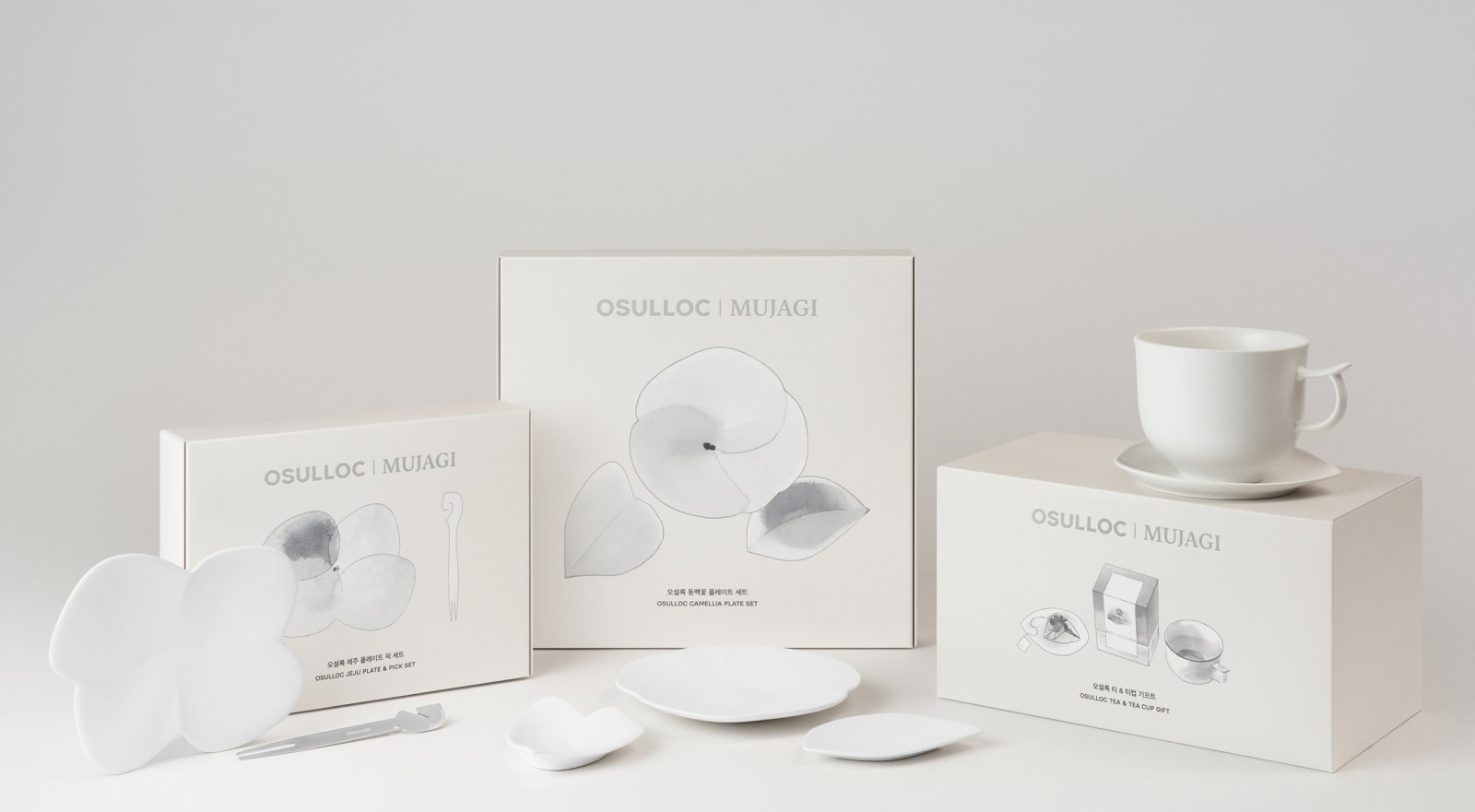 과장 없는 아름다움을 추구하는 무자기의 철학과 오설록의 근간인 제주 자연의 미감을 담았다. ‘무자기 티 컵 세트’, ‘제주 플레이트 픽 세트’, ‘동백꽃 플레이트 세트’ 등 고감도 취향의 티타임을 위한 티웨어 3종으로 구성했다. 또 ‘캐모마일 무자기 세트’, ‘세작 무자기 세트’, ‘달빛걷기 무자기 세트’ 등 ‘티 기프트 세트’ 3종도 마련했다.