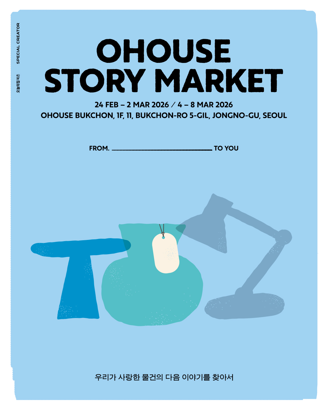 행사에 참여하는 스페셜 크리에이터는 오늘의집 내에서 감각적인 인테리어와 라이프스타일 팁을 공유하며 팬덤을 보유한 유저들로 구성했다. 자신의 애장품에 진솔한 이야기를 담은 ‘스토리 카드’를 부착해 선보인다. 방문객은 전시 물건과 카드를 살펴보며 취향이 통하는 아이템을 발견하고, 누군가의 소중한 일상이 담긴 물건이 내 삶으로 이어지는 경험을 하게 된다. 또 크리에이터가 선정한 다양한 리빙 아이템을 만날 수 있다.