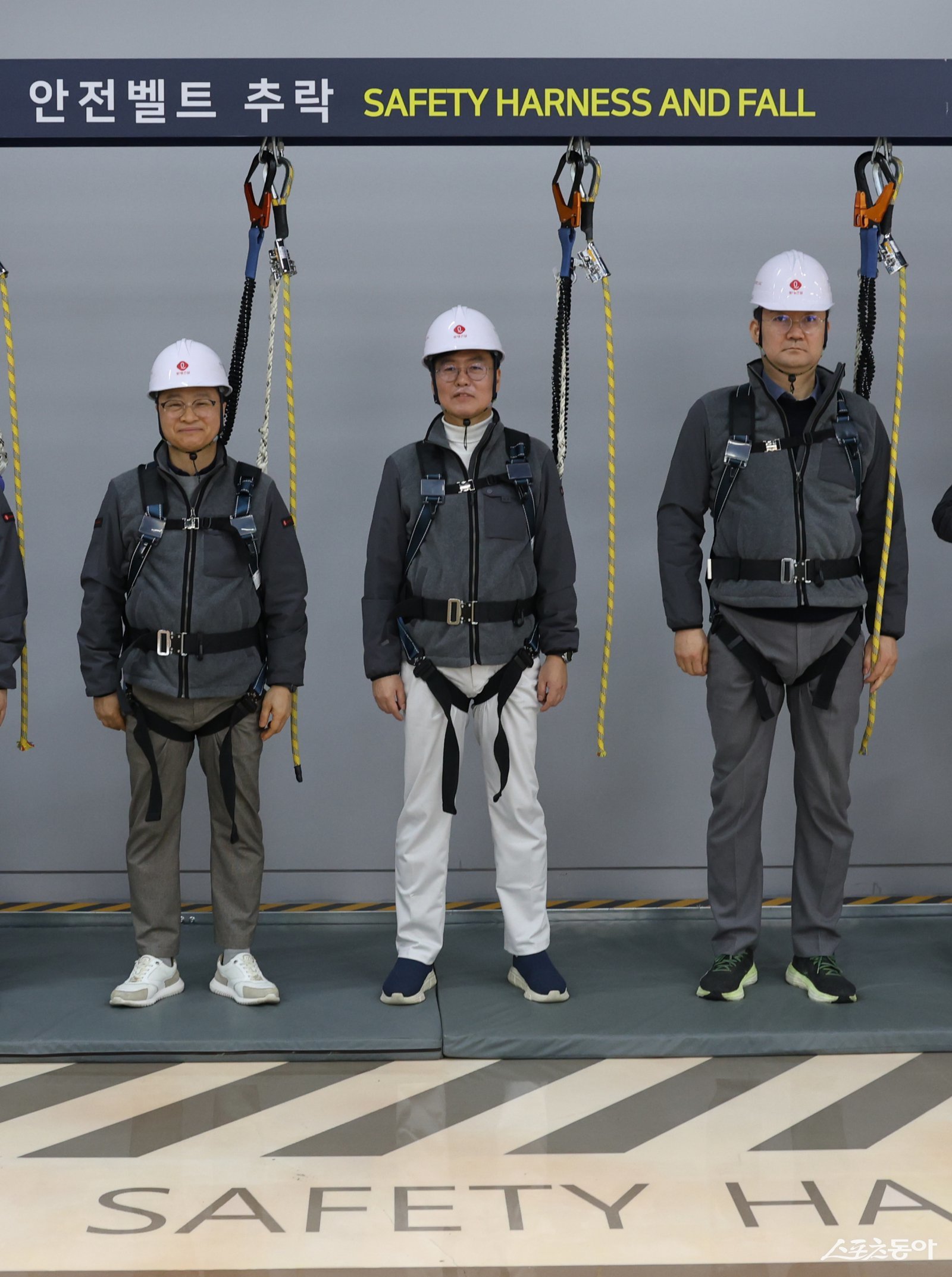 [스포츠동아 원성열 기자] 롯데건설이 ‘중대재해 제로(Zero)’ 목표 달성을 위해 전사적인 안전의식 강화 행보를 이어가고 있다. 오일근 롯데건설 대표를 비롯한 경영진은 최근 경기도 오산시 롯데인재개발원 내 안전체험센터 ‘세이프티 온(Safety ON)’에서 직접 안전체험교육에 참여하며 안전 경영에 대한 강력한 의지를 표명했다. 이번 교육은 경영진이 현장의 위험 상황을 직접 몸으로 느끼며 안전 관리의 중요성을 상기하기 위해 마련됐다. 오 대표는 “본사와 현장의 모든 임직원은 내 가족의 안전을 지킨다는 마음으로 안전관리 기준과 원칙을 철저하게 생활화하자”고 당부했다.