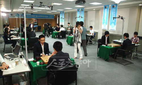 올해 9월 11일에 열린 삼성화재배 32강전의 대국 모습.