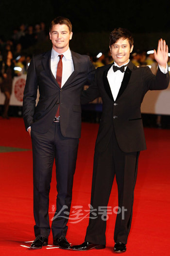 부산국제영화제를 방문한 할리우드 배우 조쉬 하트넷과 이병헌. 부산 | 임진환 기자 photolim@donga.com