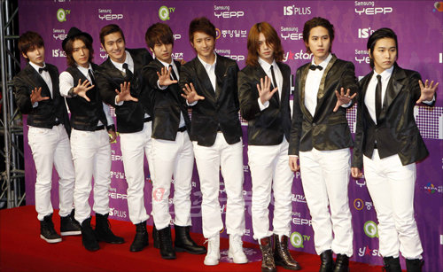 그룹 슈퍼주니어가 10일 오후 서울 올림픽공원 올림픽홀에서 열린 ‘제24회 골든디스크 시상식’에 참석해 포토월에서 플레시 세례를 받고 있다.
