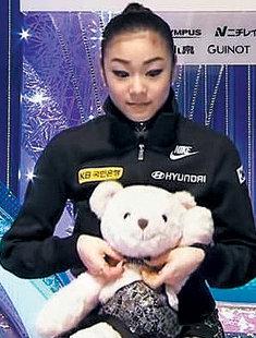 ‘김연아 곰인형’은 이달 초 일본 도쿄에서 열린 그랑프리 파이널에서 김연아의 경기가 끝나자 링크에 던져졌던 것. 김연아의 의상을 입고 스케이트까지 신은 모습이 화제를 모았었다.