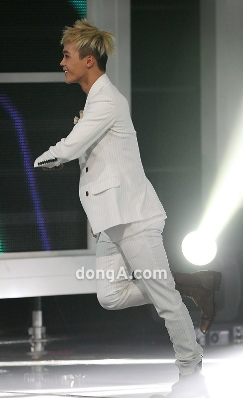 남성그룹 엠블랙 멤버 미르가 12일 오후 서울 마포구 상암동 CJ E&M센터에서 열린 케이블채널 엠넷 ‘엠카운트다운’에서 1위를 차지한 티아라의 노래에 맞쳐 춤을 추고 있다.