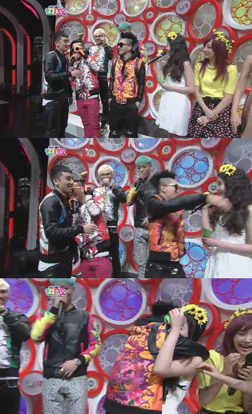 11일 방송된 SBS ‘인기가요’에 출연한 빅뱅은 컴백 무대에 앞서 세 MC 아이유 구하라 니콜과 이야기를 나눴다.