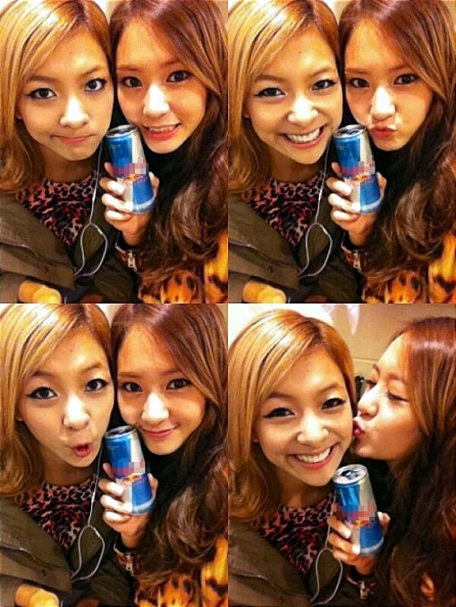 에프엑스의 멤버 크리스탈과 루나가 ‘볼 뽀뽀’ 셀카를 공개했다.