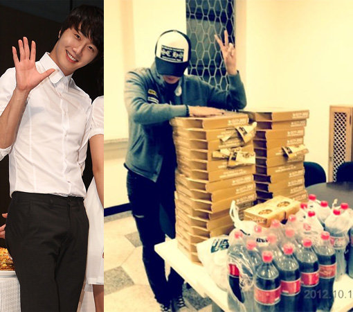 공개된 사진 속 정일우는 자신의 가슴 높이만큼 쌓인 피자상자에 팔을 기대며 브이를 그리고 있다. 또 피자뿐만 아니라 콜라와 사이드 메뉴 등도 눈에 띈다. 정일우는 자신이 재학 중인 학양대학교 연극영화과 선·후배들에게 피자와 음료를 쾌척한 것.