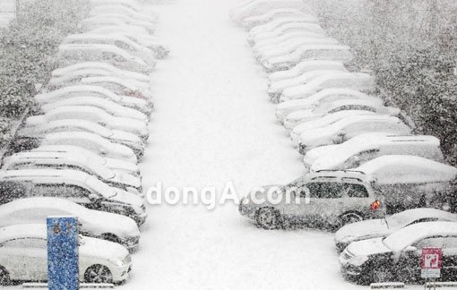 서울-수도권에 폭설이 내리고 있는 가운데 인천공항에 주차된 차량들이 하얗게 눈을 뒤집어 쓰고 있다. 사진=인천공항 국경원 기자 onecut@donga.com