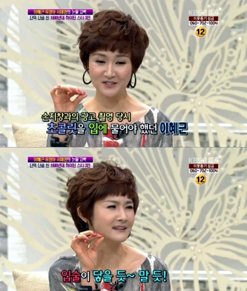 이어 이혜근은 "어머니가 광고 시안을 보시더니 어린 나이에 이런 광고를 촬영 할 수 없다며 광고 섭외를 거절했다. 손지창과 키스신을 할 수 있었는데 불발됐다"고 아쉬움을 토로했다.