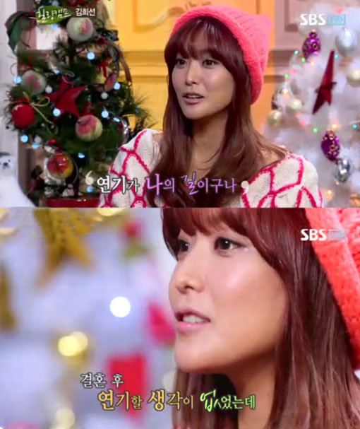 이에 김제동이 “은퇴하는 줄 알았는데 툭 나오더라. 왜 컴백을 했냐?”고 질문하자 김희선은 “결혼하고 활동할 생각이 없었는데 스스로 나태해지고 살도 쪘다”며 “전과 너무 변한 내 모습을 보니깐 ‘역시 내 일은 연기자 밖에 없구나’ 생각했다”고 대답했다.