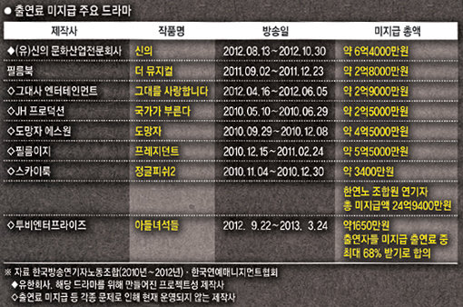 출연료 미지급 사태는 비단 ‘감격시대’만의 문제는 아니다. 한국연예매니지먼트협회가 2월까지 집계한 자료에 따르면 2006년부터 2013년까지 연기자 출연료가 미지급된 드라마는 총 31편이며, 미지급액은 29억원이 넘는다. 출연료 미지급 문제는 이제 한국 드라마의 ‘고질병’이 되어버린 지 오래다.