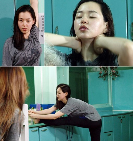 목욕을 마친 이하늬는 ‘미스코리아의 1급 뷰티 시크릿’을 전수하며 난데없이 쩍벌녀로 변신해 모두를 놀라게 했다. 이하늬는 ‘틈새 스트레칭’이라며 화장대에 발끝을 올리고 로션을 발랐다.