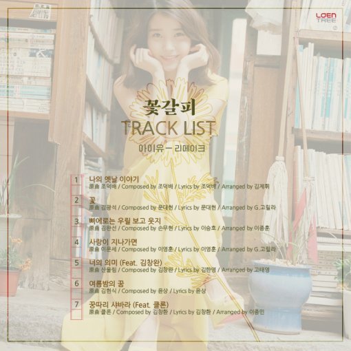 가수 아이유가 데뷔 이후 처음으로 선보이는 리메이크 앨범 ‘꽃갈피’의 트랙리스트 전체를 공개했다.
