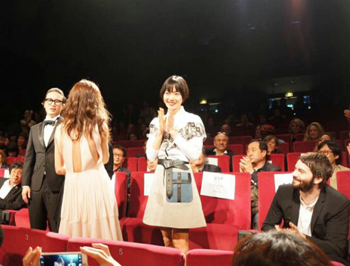 배두나는 상영 직전 가진 무대 인사가 끝나고 짐 스터게스 곁으로 가 두 손을 맞잡고 인사했다. 이어 옆 자리에 나란히 앉아 영화를 지켜봤다.