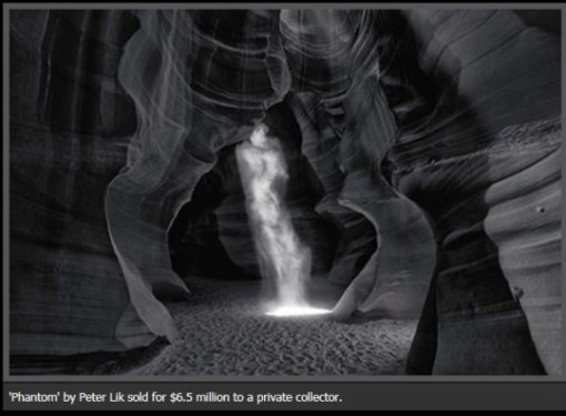 외신에 따르면 호주 풍경 사진작가 피터 릭이 미국 애리조나주에 있는 앤털로프 캐니언에서 촬영한 사진 ‘팬텀’(Phantom)이 미국 라스베이거스에서 열린 경매에서 650만 달러(약 71억 3310만원)에 낙찰됐다.