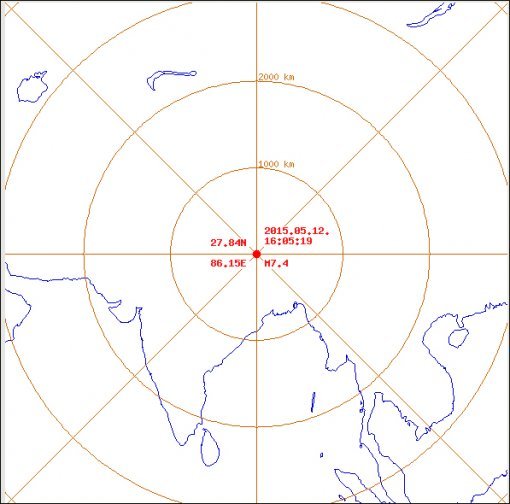 기상청은 미국 지질조사국의 분석결과를 인용해 이날 오후 4시 5분 19초에 규모 7.4의 강진이 발생했으며 진앙지는 네팔 카트만두 동쪽 83km 지점이라고 전했다.