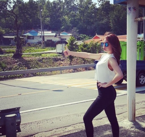 에일리는 지난 17일 자신의 인스타그램에 "히치하이킹? 오늘 날씨 좋아서 신났어"라는 글과 함께 사진 한 장을 올렸다.