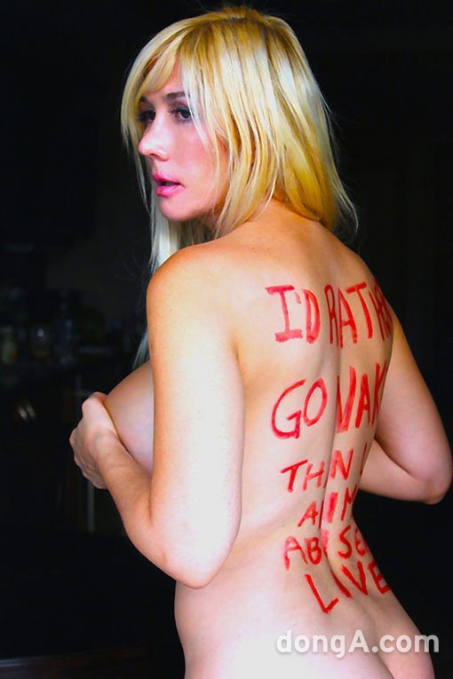 러시아 출신의 팝스타 나디아 볼리아노바가 알몸 시위가 화제다.