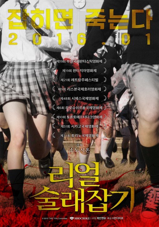 영화 ‘리얼 술래잡기’는 단순히 여고생들을 토막 내는 영화가 아니다. ‘내 삶의 주체성을 어디에서 찾을 것인가’ 하는 깊은 메시지에 초현실주의의 옷을 입혀 소노 시온 감독만의 방법으로 독특하게 그려 낸 작품이다. 덕분에 판타지아영화제, 시체스국제영화제 등 세계 유수 장르 영화제에 초청되며 그 진가를 인정받았다.