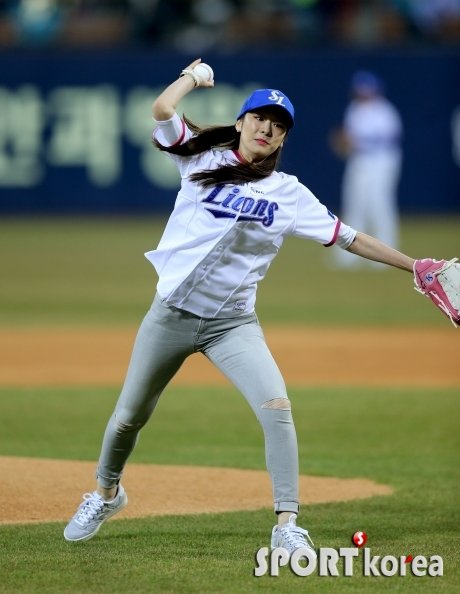 이날 김연아는 삼성의 홈 유니폼 상의를 입고 마운드에서 5m 정도 앞에 섰다. 힘차게 와인드업을 한 뒤 뿌린 공은 삼성 포수 이지영의 앞에서 한번 바운드됐다.