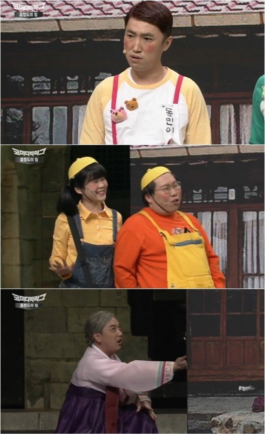 지난 3일 '충청도의 힘' 코너에서는 장동민이 7세 어린이 역으로 출연해 새 장난감을 자랑하는 친구에게 "쟤네 아버지가 양육비를 보냈나 보나. 선물을 양 쪽에서 받으니 재테크"라는 대사를 했다.