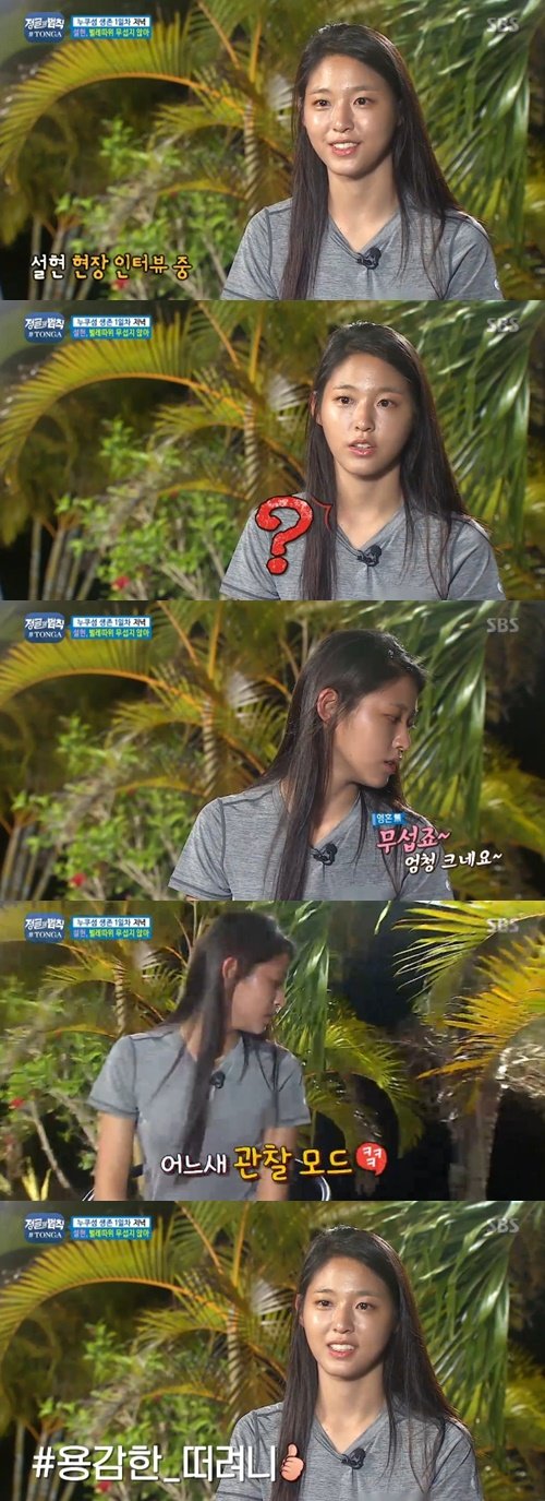 이날 설현은 코코넛크랩 사냥을 다녀온 후 재킷을 벗더니 이를 베개 삼아 바닥에 드러누웠다. 실신에 가까울 정도로 곯아떨어진 설현은 10초 만에 깊은 잠에 들었고 이를 본 이훈은 “아침까지 잘 것 같다”고 말했다. 멤버들이 “안에 들어가서 자라”고 다독였지만 설현은 이내 꾸벅꾸벅 졸기 시작해 웃음을 자아냈다.