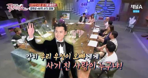 이날 MC 공형진은 정우성 사기 사건 피의자인 드라마 작가 박 모 씨는 자신의 지인이기도 하다며 경악을 금치 못했다. 공형진은 "저도 알고 있는 사람이다. 제가 결혼식 사회도 봤었다"고 말해 좌중을 경악하게 했다.
