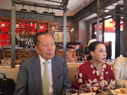 16일 오후(한국시간) 프랑스 칸의 한 식당에서 취재진을 만난 부산국제영화제 김동호 명예집행위원장(왼쪽)과 강수연 집행위원장. 칸(프랑스) | 이해리 기자 gofl1024@donga.com