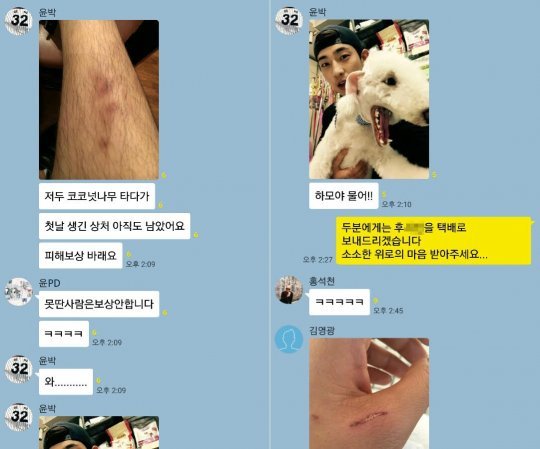 이에 질세라 윤박과 김영광, 소녀시대 유리까지 연달아 자신의 상처를 내보였다. 스태프가 “못 딴 사람은 보상 안 합니다”라고 반격하자 윤박은 물러서지 않고 자신의 반려견을 안고 “하모야 물어!!”라고 외쳤다. 결국 제작진은 연고와 함께 더 열심히 편집할 것을 약속하며 웃음을 자아냈다.