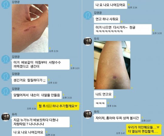 이에 홍석천이 “유리 앞에서 멋진 남자 보여주려다 (그랬다)”라고 놀리자 부끄러워하던 허경환은 코코넛을 따다가 난 상처 자국을 찍어 “피해 보상 바람”으로 응수했다.