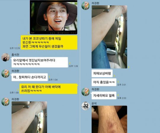 공개된 단체 카톡을 보면 SBS ‘정글의 법칙 in 뉴칼레도니아’편 8일 방송분을 편집하던 제작진이 “내가 본 코코넛 따기 중에 제일 웃기다”라며 허경환의 코코넛 따기 도전 장면을 사진으로 찍어 보냈다.