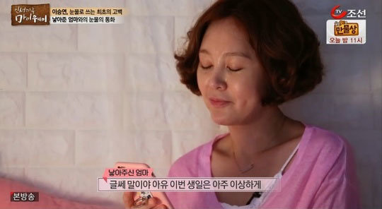 지난 10일 방송된 TV조선 ‘인생다큐 마이웨이’에는 1992년 미스코리아 미 출신의 배우 이승연이 출연해 현재 평범한 엄마로 살아가는 일상과 각종 논란, 가정사 등을 공개해 시청자들을 뭉클하게 했다.