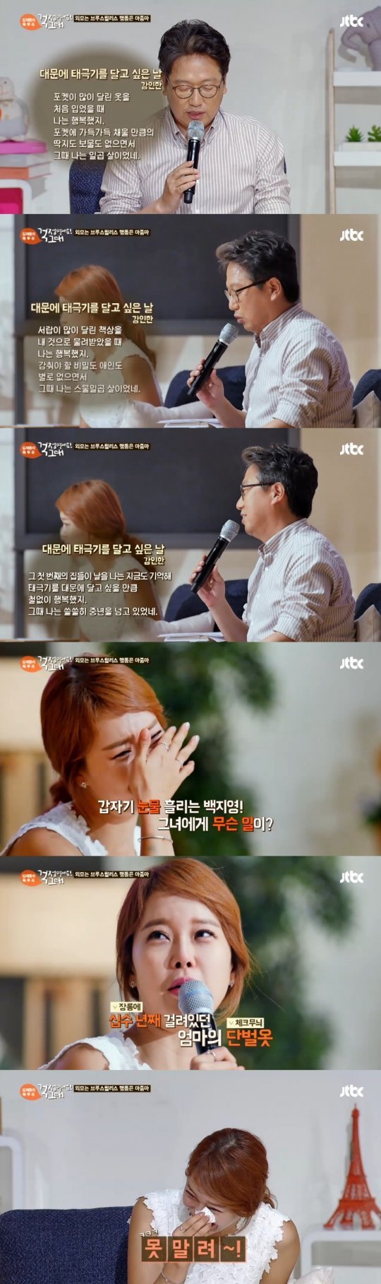이날 방송에서 정재승 교수는 강인한 시인의 '대문에 태극기를 달고 싶은 날'이라는 시를 낭독했고, 중년의 헛헛한 마음을 담은 시를 조용히 듣고 있던 백지영은 갑자기 눈물을 터트렸다.