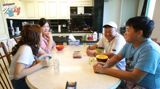 그런데 이 때 방에 있던 아들 김동현(26세)이 부녀가 요리를 하고 있는 주방에 등장했다. 회사생활에 바쁘고 여행을 좋아해 집에 있는 시간이 별로 없던 동현이 휴일을 맞아 오랜만에 집에서 휴식을 취하고 있었던 것.