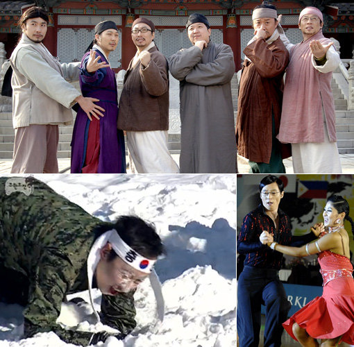 ‘무한도전’의 멤버들은 혹한의 설원에서 특전사 혹한기 훈련을 받으며 뒹굴었다. 신나는 음악에 맞춰 댄스스포츠에 도전했으며, MBC 사극 ‘이산’의 이색 단역으로 빛을 발했다. 사진제공|MBC