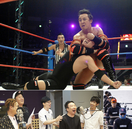 ‘무한도전’의 도전은 늘 ‘상상 그 이상’이다. 2010년 프로레슬링에 도전한 ‘WM7’ 특집은 1년여 준비 끝에 완성됐다. 2009년 봅슬레이 특집, 2015년 영화 ‘비긴어게인’ 더빙 특집 역시 숱한 화제를 낳았다.(위부터 시계방향으로) 사진제공|MBC