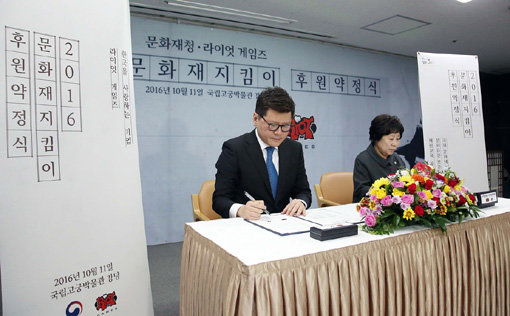 인기게임 ‘리그 오브 레전드’(LoL)의 개발 및 유통사 라이엇게임즈가 11일 서울 종로 국립고궁박물관 대강당에서 문화재청과 함께 후원 약정식(사진)을 진행했다. 라이엇게임즈는 문화유산 보존 관리 및 해외 문화재 환수, 각종 체험 교육 등 주요 프로젝트를 위해 총 8억원을 추가 기부하기로 했다.