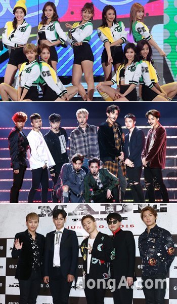 걸그룹 트와이스-그룹 엑소-빅뱅(맨 위부터). 동아닷컴DB