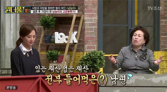 이어 “나는 영수증에 몇 만 원 이상 나가는 게 없는데, 한 번은 남편 영수증을 딱 보니까 600만 원이 나온 게 있었다. 골프 치러 가서 홀 인 원을 했다고 했다. 홀 인 원하면 같이 간 사람들 돈까지 다 내야 된다면서? 그런데도 남편이 무서워서 ‘이게!’ 그러면 싹싹 빌었다. 매 맞을까봐. 이래가지고 싸움 한 번 못해보고, 돈은 다 뜯기고. 여 자는 또 왜 이렇게 많아. 세컨드가 가는데 마다 있더라고”라고 덧붙여 스튜디오를 경악케 했다.