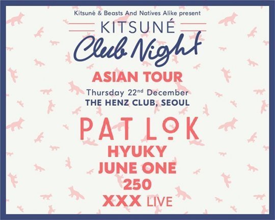 이센스가 언급한 이번 파티는 패션 브랜드이자 레코드 레이블로써 독자적인 영역을 구축해 온 세계적인 브랜드 ‘키츠네’가 ‘메종 키츠네 컴필레이션 18’ 앨범 발매를 기념하며 진행 중인 아시아 투어 일정 중 서울에서 벌어지는 파티다. 이번 파티에는 세계적인 DJ ‘팻 록(Pat Lok)’을 포함하여 국내 아티스트인 ’글렌체크’, ‘XXX’, ‘250’이 출연한다.